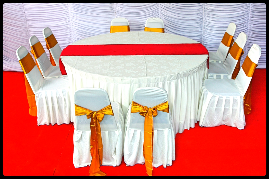 Products > Accessories > 6ft IBM Round Table + Damas Cloth + Banquet Chairs + Cover + Liner + Ribbon